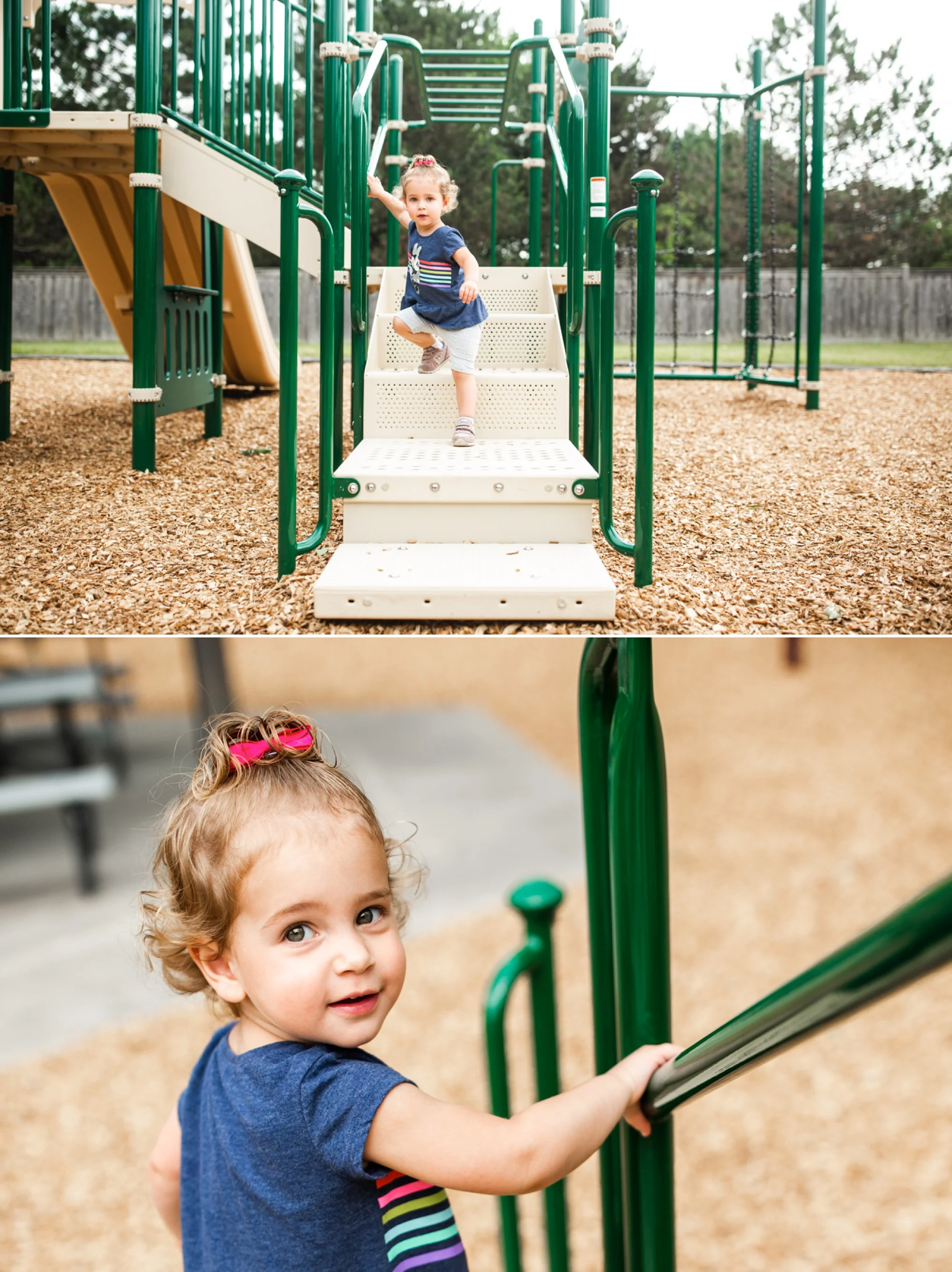 LIGHT: If it is a bright sunny day, you might be there during midday. This will create some bright images with saturated color and contrast. However, this can also be a hard light to capture a flattering portrait. Try and save the portrait shots for a shaded area of the park (near a tree or the shadow of a piece of equipment). Try and position yourself so that the sun will be at your child’s back. This should help to even out the light illuminating their face and avoid harsh shadows.